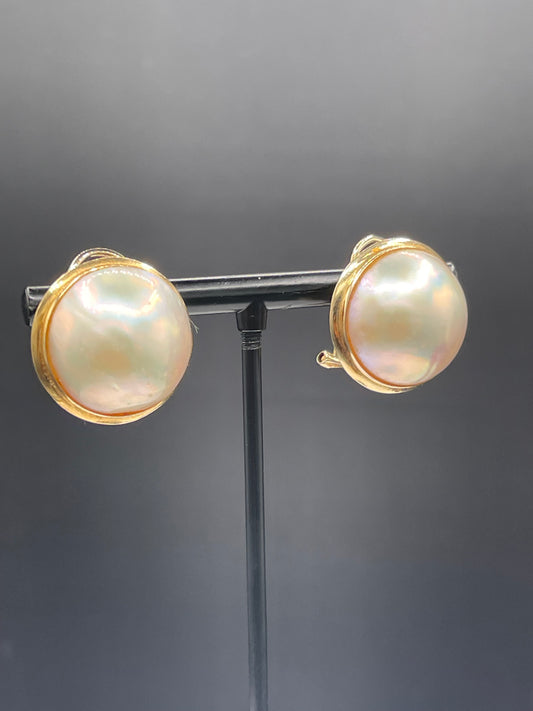 Natural Mabe Pearl 14k Yellow Gold Omega Back Earrings