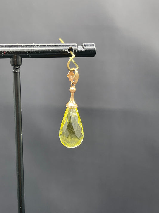 Natural Ouro Verde Quartz Briolette 14k Yellow Gold Pendant