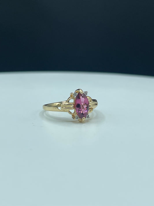 Natural Pink Tourmaline Marquise & Diamond 14k Yellow Gold Ring (Size 7.25)