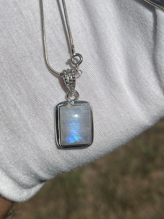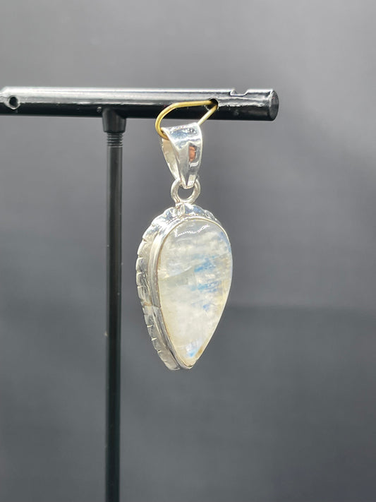 Natural Rainbow Moonstone Sterling Silver Pendant