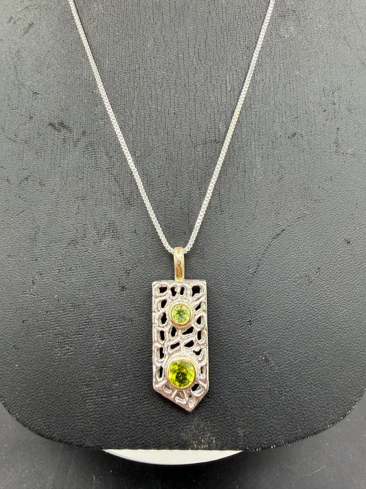Natural Peridot Sterling Silver + 18k Gold Pendant & Sterling Silver Necklace | 16 Inches in Length