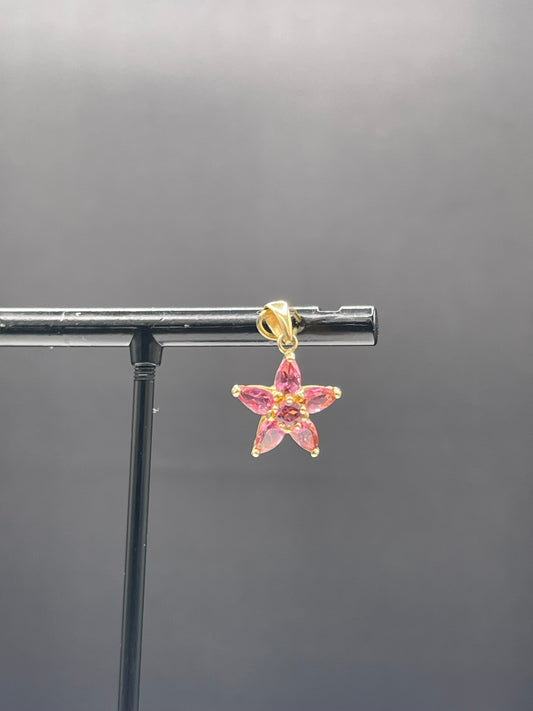 Natural Pink Tourmaline 14k Yellow Gold Flower Pendant