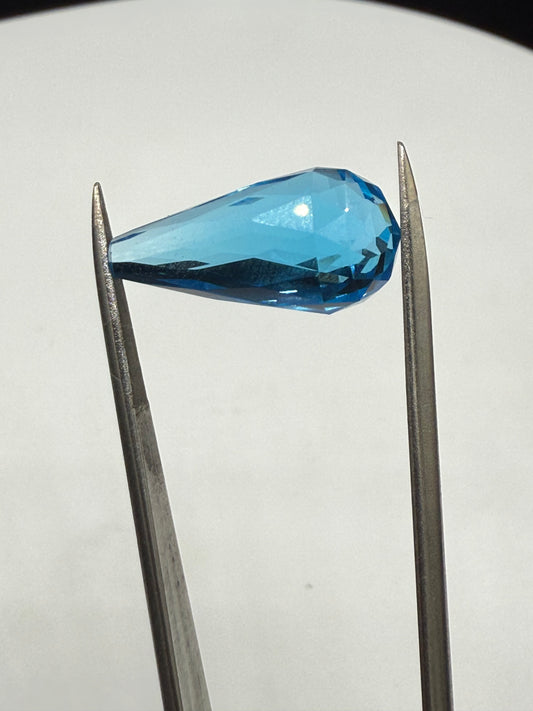 Natural Super Swiss Blue Topaz Briolette Cut Loose Gemstone | 18.4 x 8.8 MM