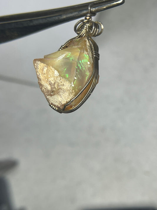 Rough Ethiopian Opal Sterling Silver Wire Wrapped Handmade Pendant