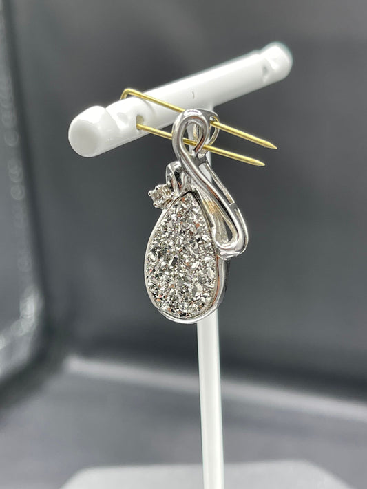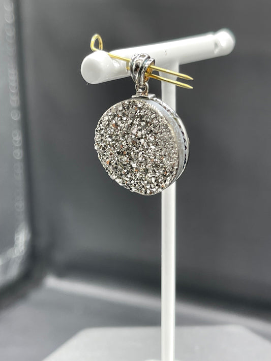 Round Silver Druzy Quartz Sterling Silver Silver Pendant