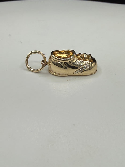 14K Solid Yellow Gold Baby Shoe Pendant with Natural Diamonds