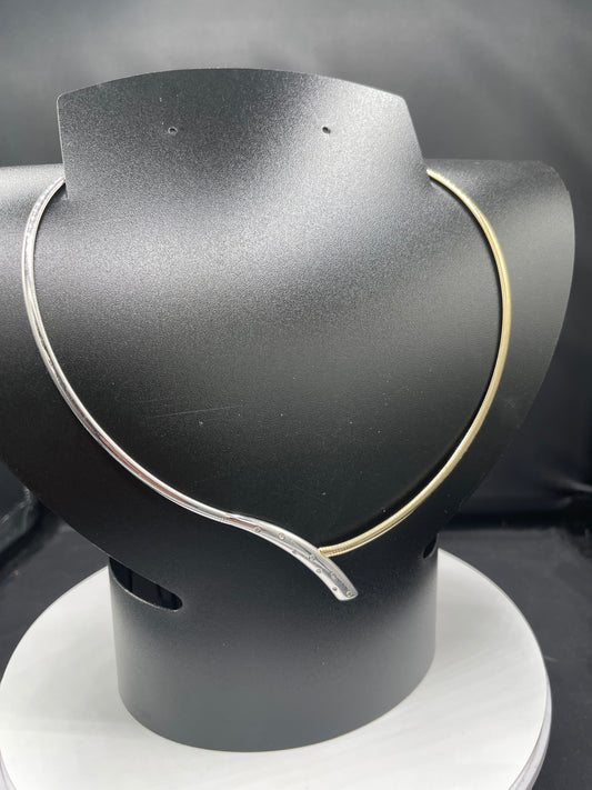 14k Two Tone Yellow + White Gold And Diamond Bypass Omega Necklace
