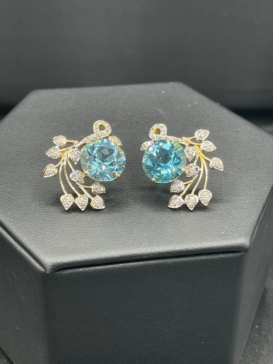 15.90 Carat Swiss Blue Topaz & Diamond 18k Yellow Gold Screw Back Earrings
