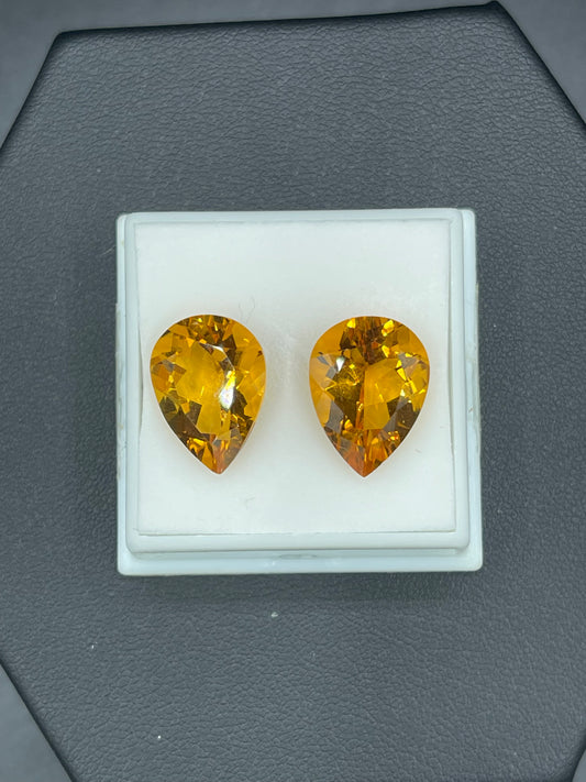 14.64 Carat Natural Madeira Citrine Pear Cut Matching Loose Gemstones (11.74 x 16.04 x 8.13 MM)