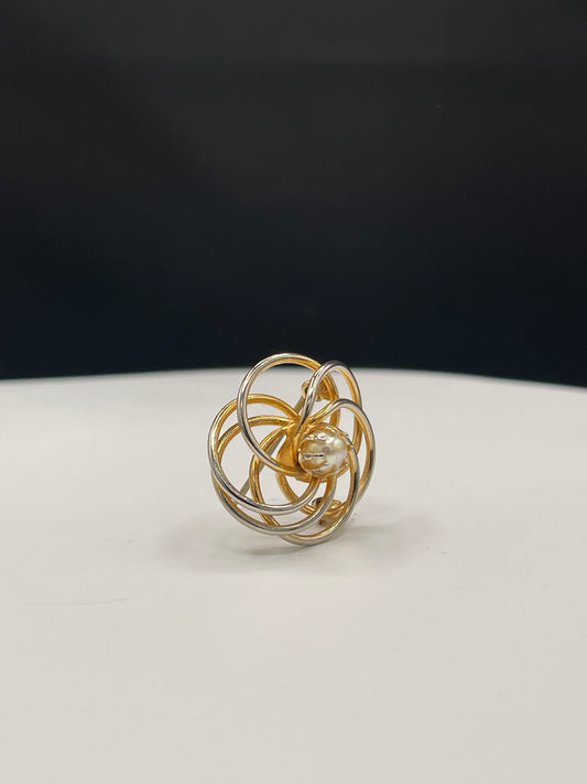 Vintage 10k Yellow & White Gold Brooch Pendant with Natural Cultured Pearl