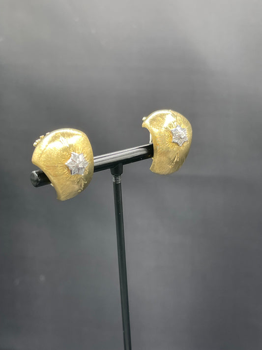 Vintage Milor Solid 18k Yellow + White Gold Earrings