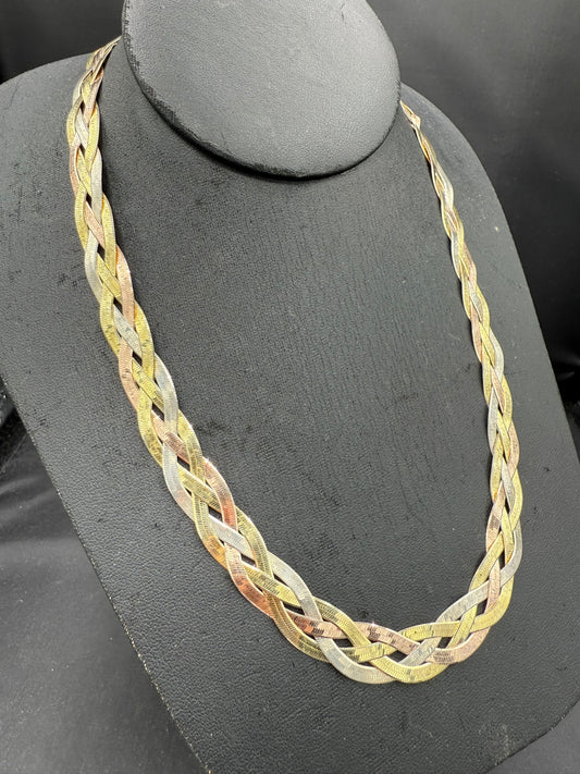 Vintage Solid Tri Color Sterling Silver Necklace 925 Italy Milor | 18.5” Handwoven Rose, Yellow & White Braided | 25.6g