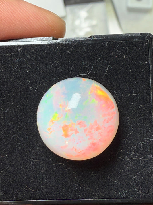 20.24 Carat Natural Ethiopian Opal Round Cabochon – Fiery Play-of-Color | 17.8 MM Loose Gemstone