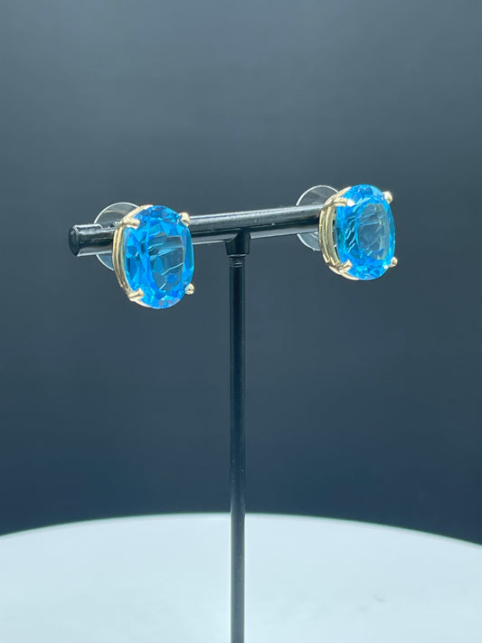 20.66 Carat Super Swiss Blue Topaz 14k Yellow Gold Earrings