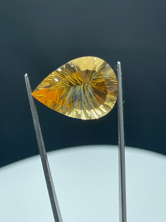 22.26 Carat Natural Citrine Laser Concave Pear Cut Gemstone - 24x17.6x12.4 MM, Internally Flawless