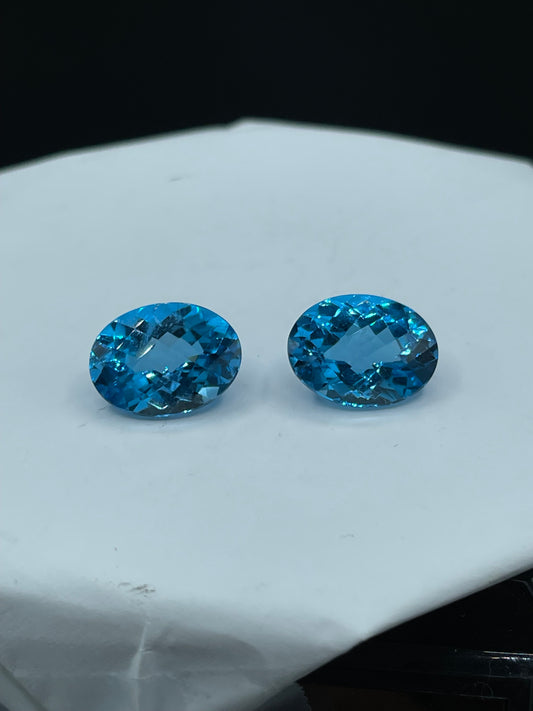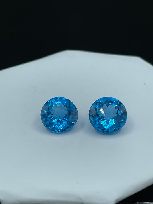 23.08 Carat Super Swiss Blue Topaz Round Cut Matching Pair Loose Gemstones 14.05 x 14.05 x 9.53 MM