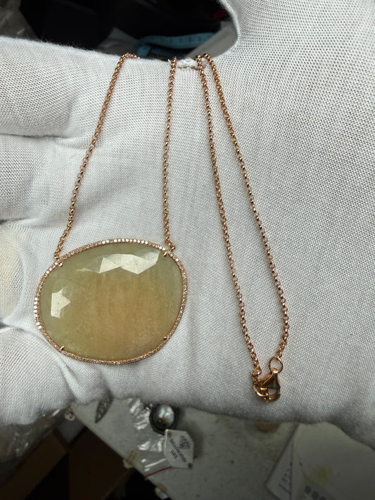 Natural Yellow Sapphire & Diamond Pendant Necklace 18K Rose Gold | 16 Inches