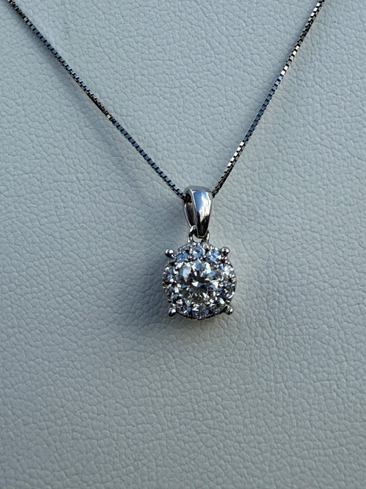 Natural Diamond Pendant 14k White Gold Necklace 0.59ct | Halo Drop | 18” Chain