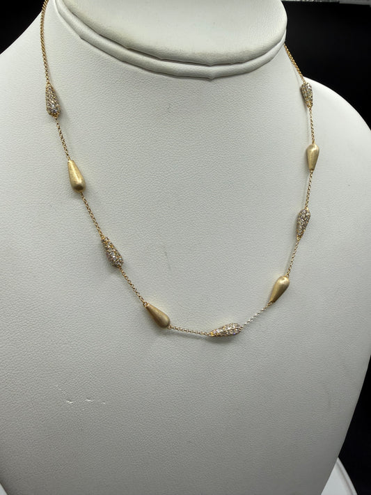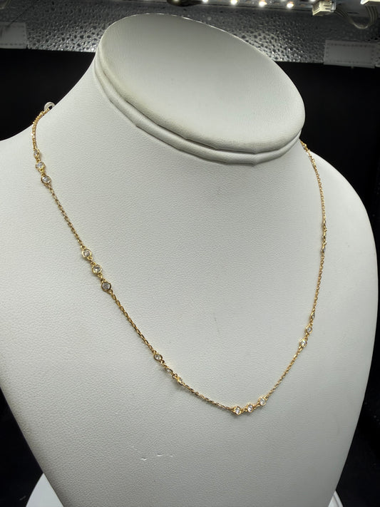 Natural Diamond By The Yard 14K Yellow Gold Necklace | 10 Stations 30 Diamonds | 18 Inches