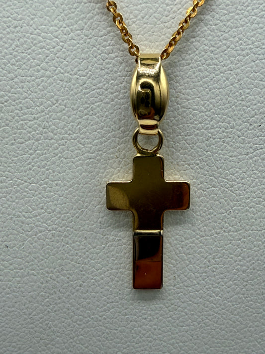 Vintage Italian Tri-Color 18K Gold Cross Pendant + 18K Chain | Yellow, White & Rose Gold | 17.75” Chain