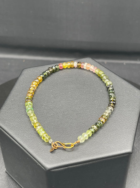 Natural Multi Color Tourmaline 18k Gold Clasp Beaded Bracelet