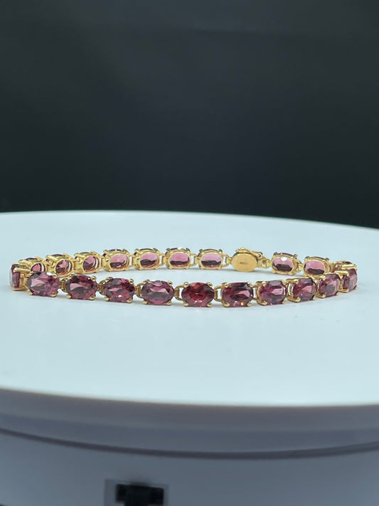 Natural Rhodolite Garnet 14k Yellow Gold Tennis Bracelet