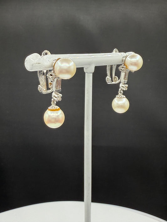Antique 14k White Gold Cultured Pearl & Diamond Dangle Earrings