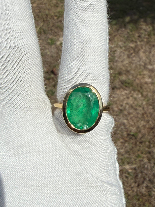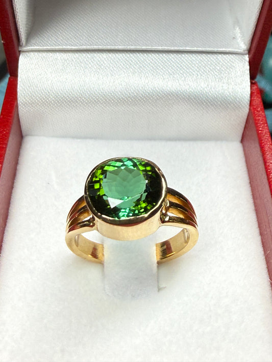 3.48 Carat Natural Chrome Tourmaline 20k Yellow Gold Ring | Custom Oval Green Gem | Size 5.5