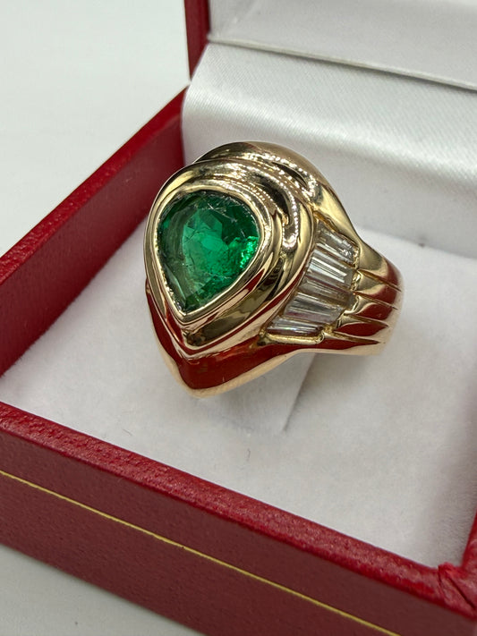 3.20ct Natural Pear Emerald & 1.10ct Diamond Ring 18K Yellow Gold | Size 6