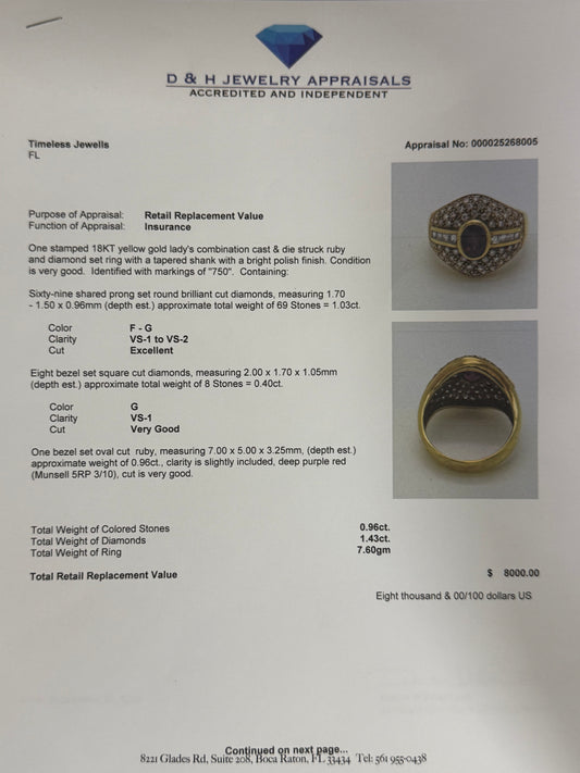 Natural Thai Ruby & Diamond 18k Yellow Gold Ring (Size 6.5)