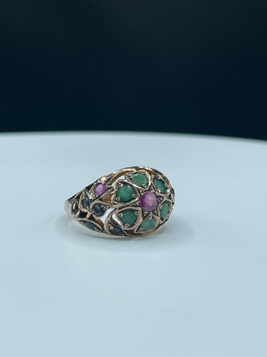 Handmade Natural Sapphire & Emerald 10k Yellow Gold Ring | Size 7.75 Unique Gemstone Jewelry