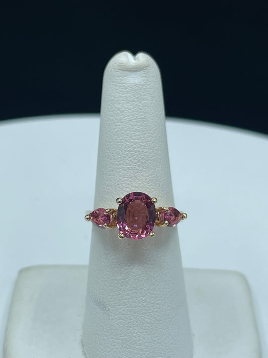 Elegant Natural Rubellite Pink Tourmaline 14k Yellow Gold Ring | 3 Carats Total | Size 6.5