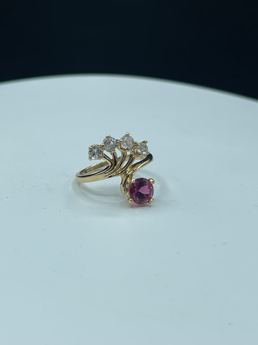 Natural Rubellite Tourmaline & White Sapphire 14k Yellow Gold Ring - Size 6.25
