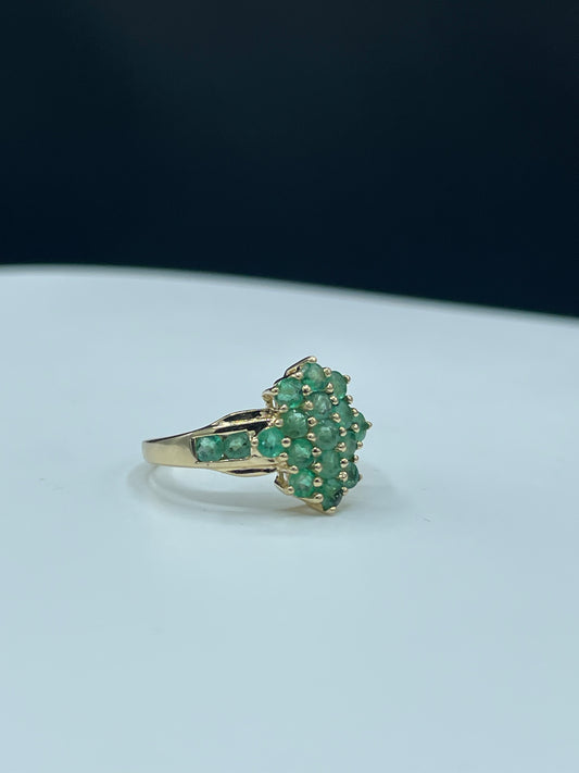 Natural Emerald Cluster 14k Yellow Gold Ring (Size 6.25)