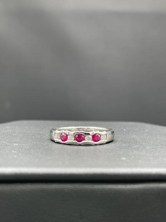 Natural Ruby & Diamond 14k White Gold Ring (Size 6.75)