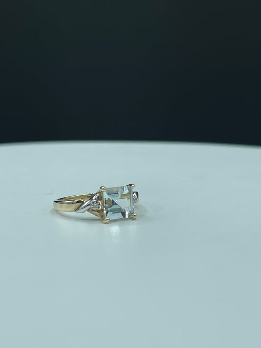 Natural Aquamarine & Diamond 10k Yellow Gold Ring (Size 7.25)