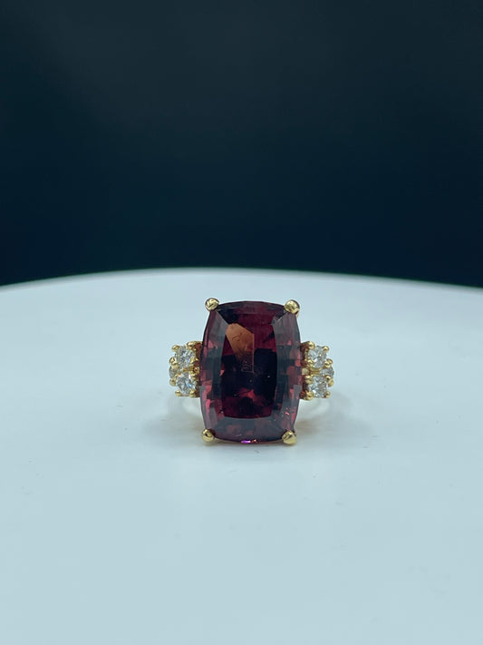 16.80 Carat Custom Cut Rubellite & Diamond 18K Cocktail Ring (Size 6.75)