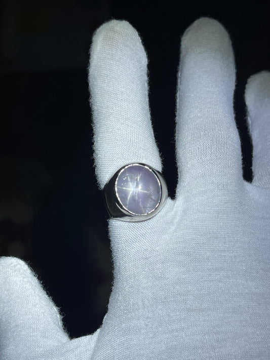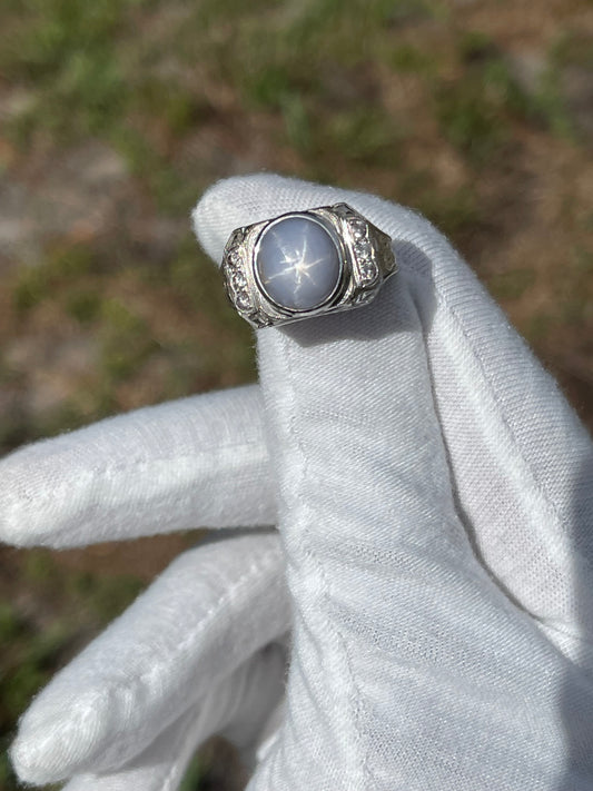 Men’s Natural Star Sapphire 14k White Gold Ring | 30ct Sri Lankan Asterism | Size 10.5