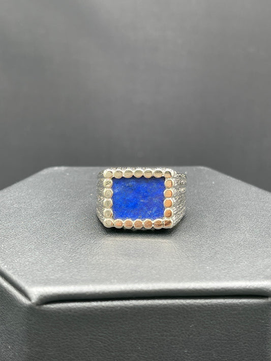 Handcrafted Lapis Lazuli 18K White Gold Vintage Ring (Size 11)