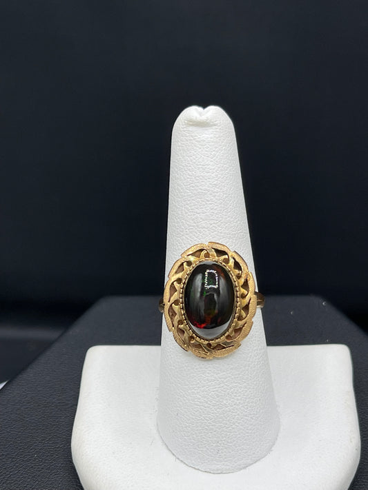 7.19 Carat Natural Black Opal 14k Yellow Gold Ring (Size 8)