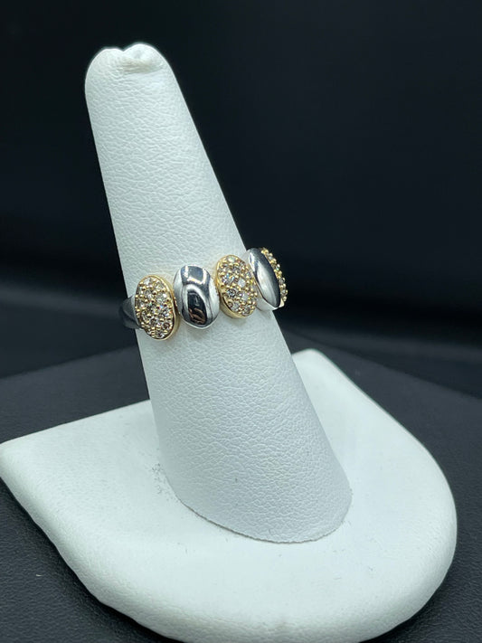 Natural Diamond 18k Yellow + White Gold Multi Cluster Ring (Size 7.5)