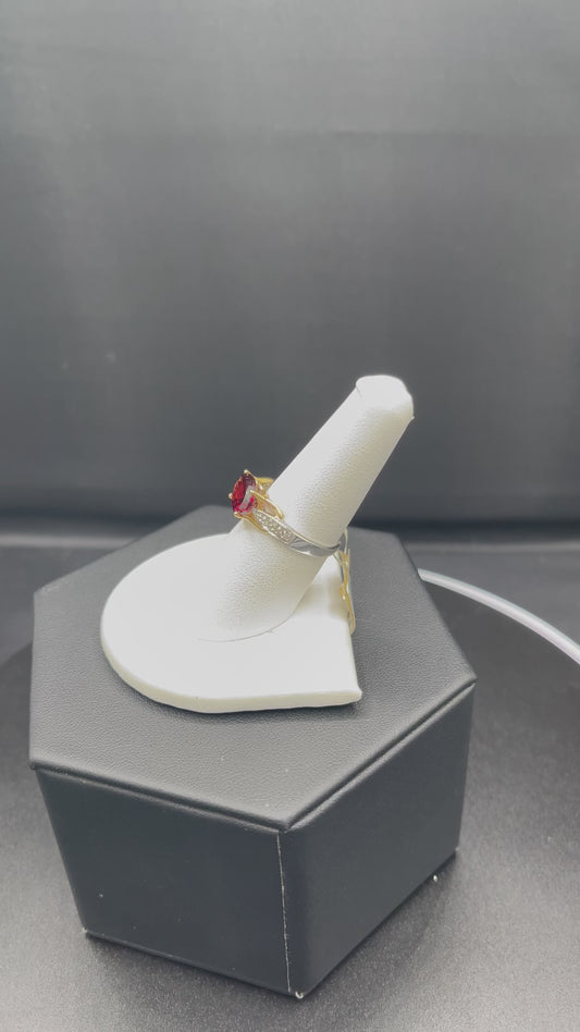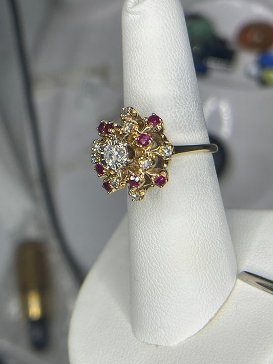 Vintage Diamond And Ruby 14K Flower Designer Ring (Size 6.75)