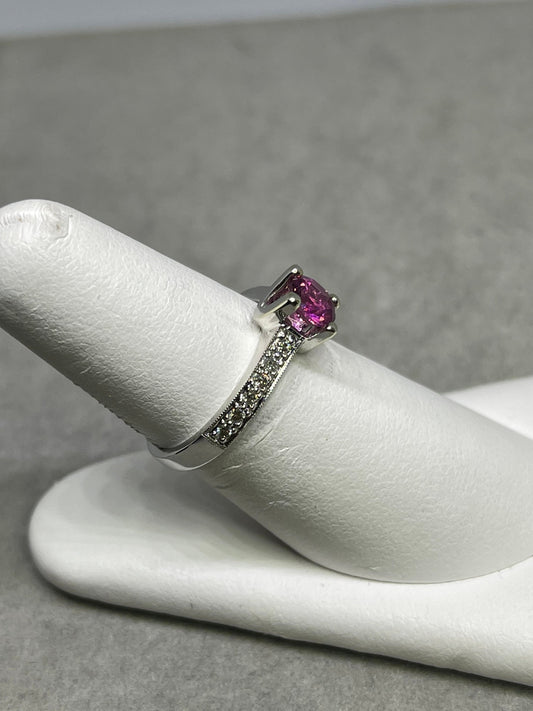 Natural Rubellite Fuchsia Pink Paraiba Tourmaline And Diamond Engagement 14k White Gold Ring
