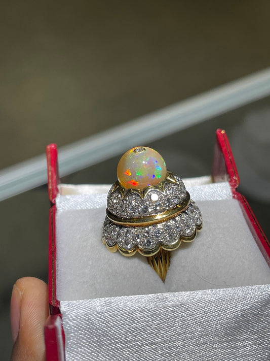 14.78 Carat Ethiopian Opal & Diamond 18K Yellow Gold Ring (Size 6.5)