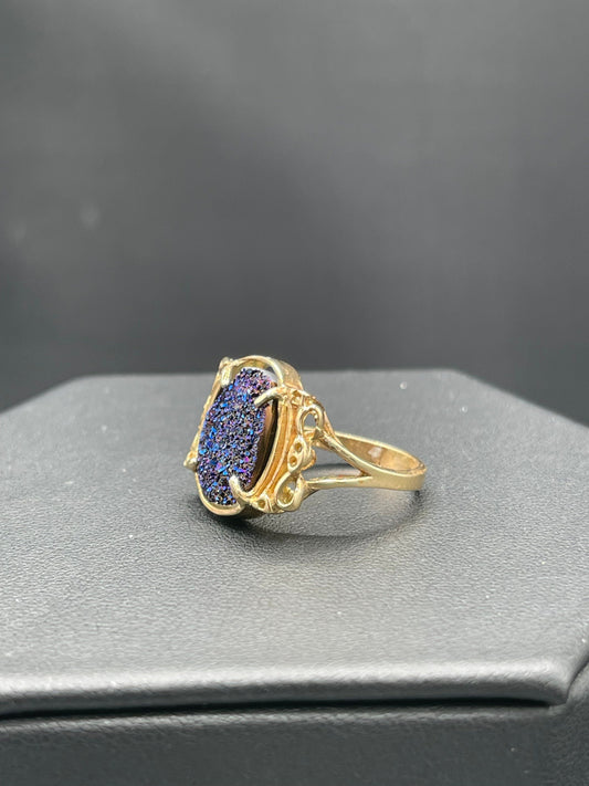 Cobalt Druzy Quartz 14k Gold Ring (Size 7 3/4)
