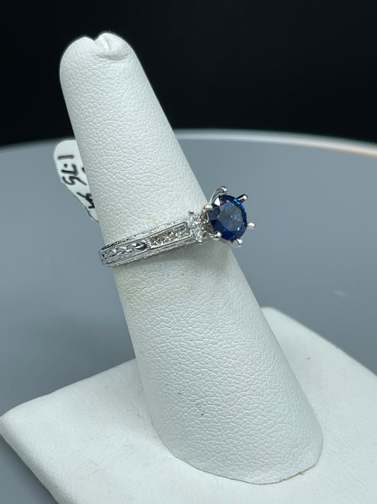 1.57 Carat Natural Sapphire And Diamond 18k White Gold Engagement Ring (Size 6.25)