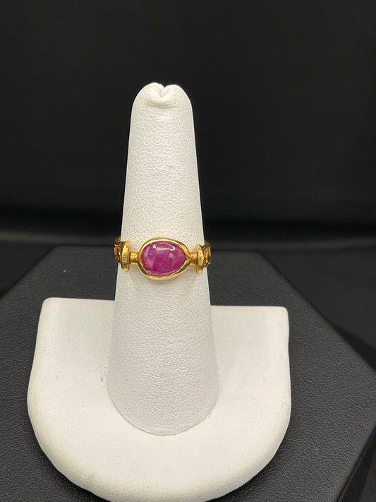 1.60 Carat Natural Burmese Ruby 14k Yellow Gold Handmade Designer Ring (Size 7)