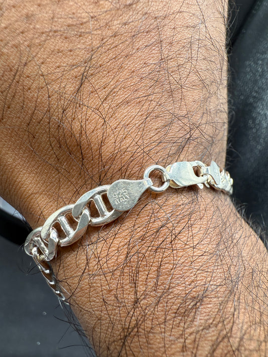 Solid 925 Sterling Silver Mariner Link Bracelet | 9” Italian Silver | 7.5mm Wide | 17g | Stamped 925 Italy | Unisex Chain Bracelet