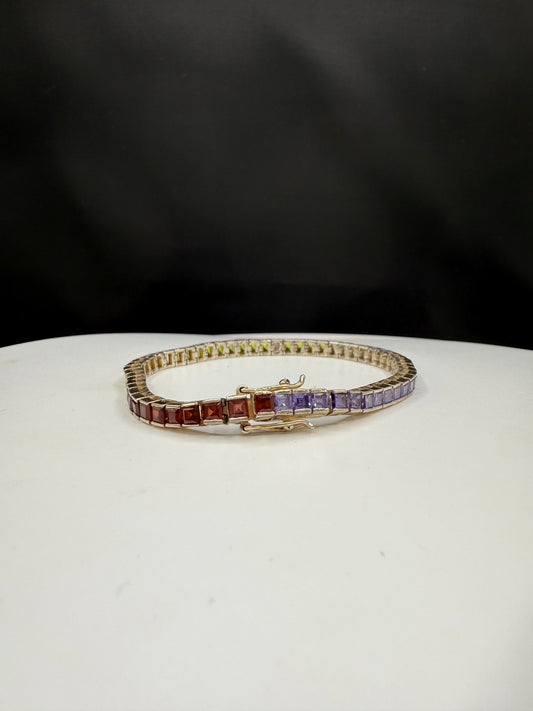 Vintage Sterling Silver Princess Cut Multi-Gemstone Tennis Bracelet | Amethyst, Topaz, Garnet, Peridot, Citrine | 7.5” |