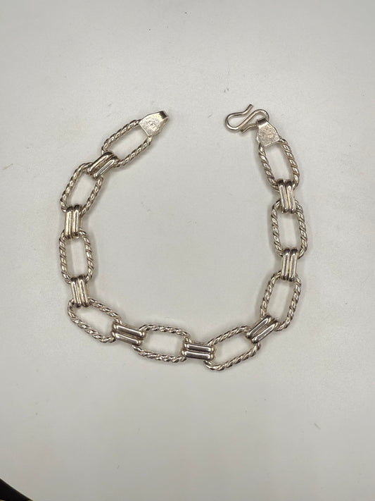 Vintage Solid Sterling Silver Rope Rectangle Link Bracelet | 17g | 8” Unisex S-Hook 925 Chain